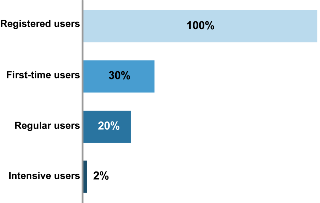 Level of usage: registered user to heavy user