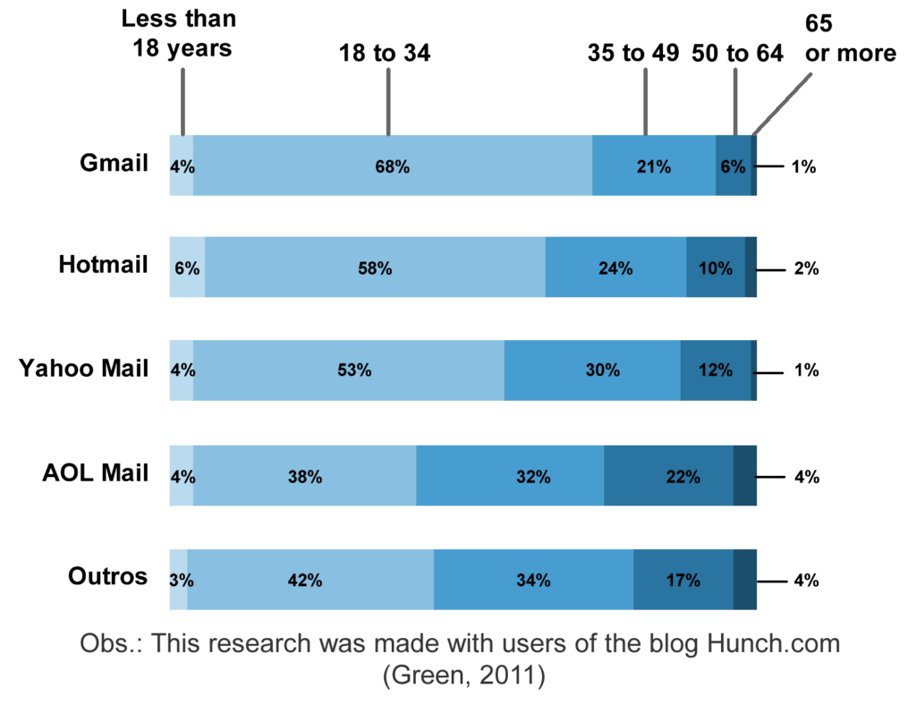 Percentage of age group of email systems users