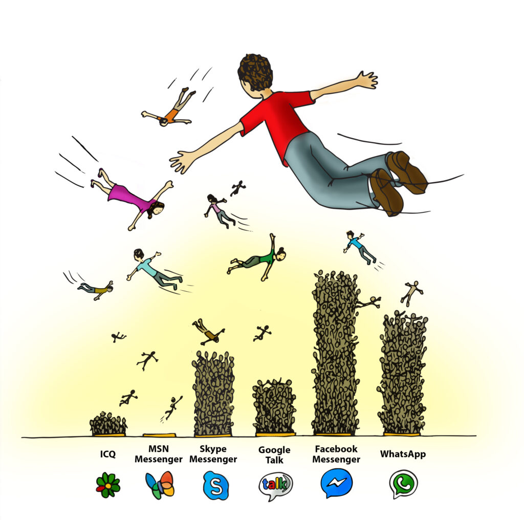A conversation system isn’t always popular all over the world, but it can become popular in a specific niche, that is, be a success in a given region, age group or platform (web, desktop or smartphone). This is similar to the geographic isolation that results in the speciation of living beings