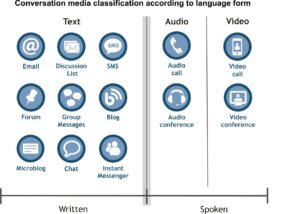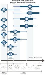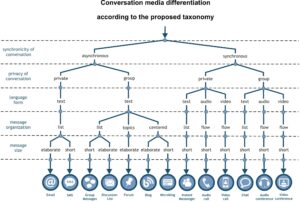 Finally, a few other criteria found in the literature to classify communication media, such as the support for the communication and the system for recording messages don’t apply to this taxonomy, because all conversation media classified here have computing as a support and a digital recording system.