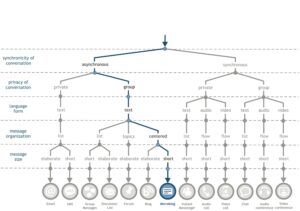 The taxonomy presented in this chapter is useful in different scenarios. It aids the characterization and comprehension of different conversation media. It helps to design the functionalities of the conversation service so that a given conversation media can be implemented in a new system. It’s also useful to suggest conversation media that are yet to be culturally established – for example, by the diagram we can conclude that the video language form isn’t established as an important asynchronous conversation medium, even though YouTube already allows videos to be sent as answers to other videos. Several branches of the diagram are yet to be differentiated – each differentiation is an opportunity to explore conversation media that aren’t in common usage.
